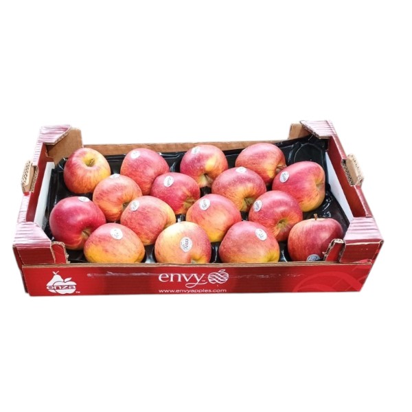 Le mele Envy sono una varietà premium di mela, originaria della Nuova Zelanda, ottenuta dall’incrocio tra Gala e Braeburn. Hanno una buccia rossa intensa con sfumature dorate, una polpa croccante, succosa e dolce, con un leggero sentore di pera e miele.